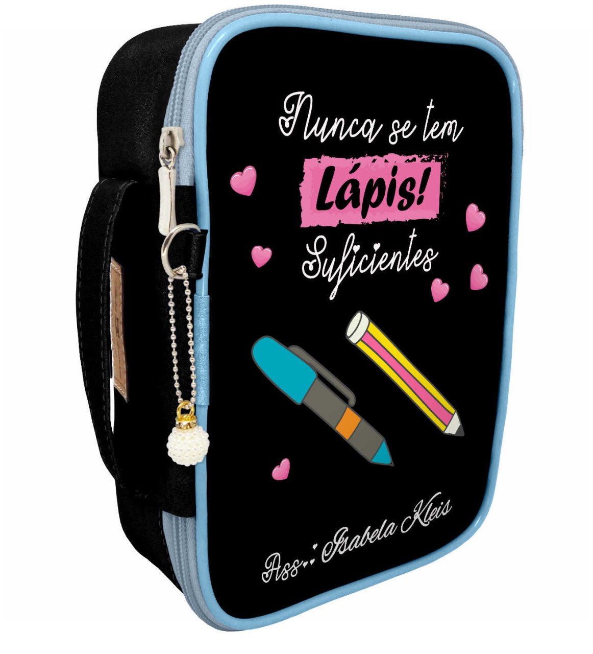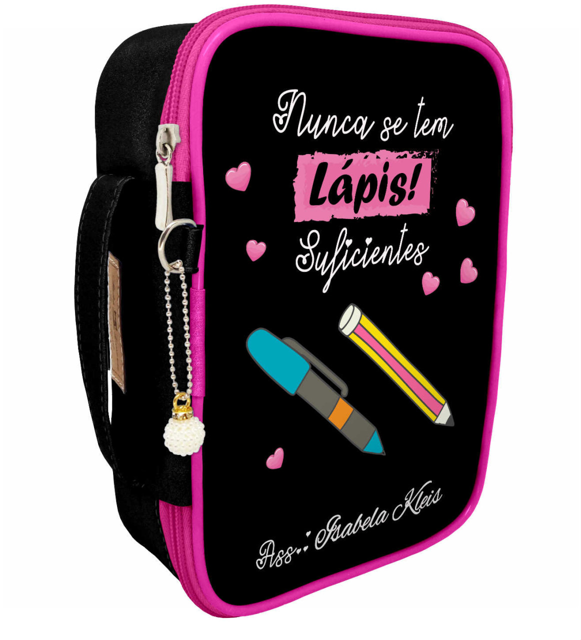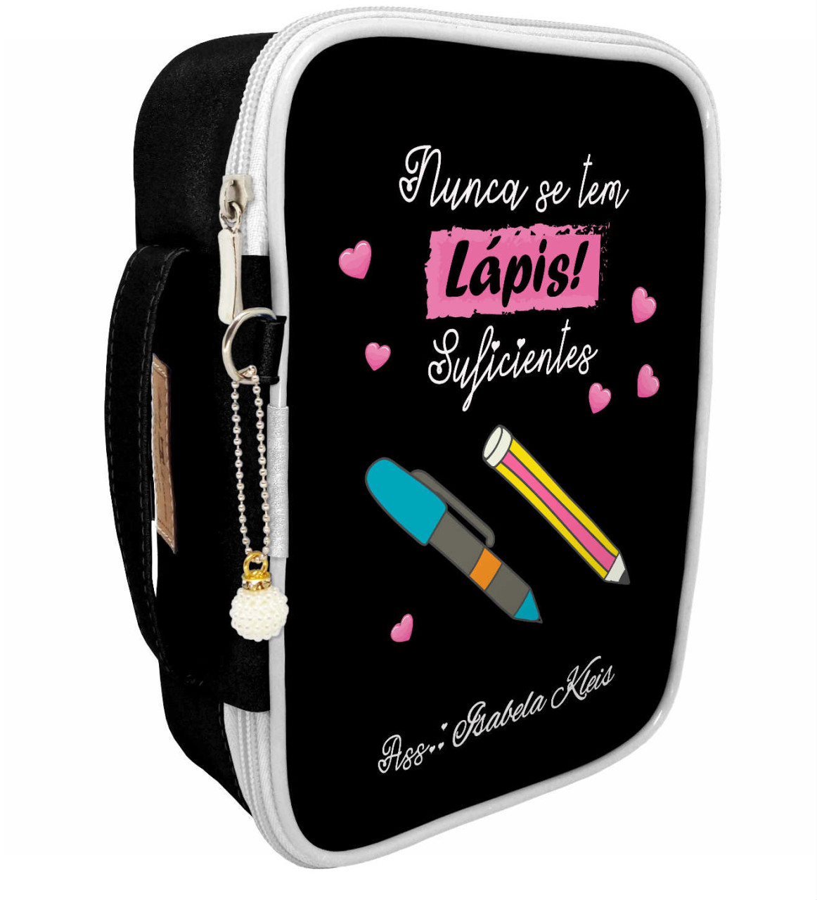 São 38 elásticos que facilitam a organização das suas canetas, são dois bolsos para suas canetas grossas, sua alça de mão facilita o transporte. Imagine nunca mais precisar vasculhar gavetas ou bolsas em busca da caneta certa!