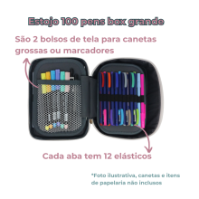 Apresentando o estojo modelo 100 Pens box grande da marca Lasartes, o item perfeito para satisfazer todas as suas necessidades de armazenamento e organização de materiais de escrita! Este estojo é um verdadeiro tesouro para os apaixonados por canetas, lápis, marcadores entre outros itens de papelaria.
