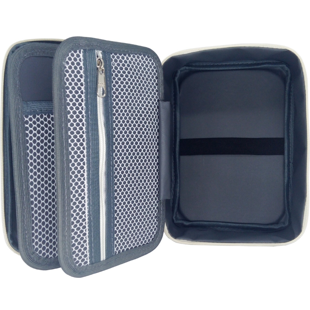 São 38 elásticos que facilitam a organização das suas canetas, bolso para suas canetas grossas, bolso para itens pequenos e sua alça de mão facilita o transporte.