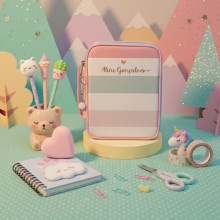 - 2 Bolsos em tela para canetas mais grossas ou marcadores.