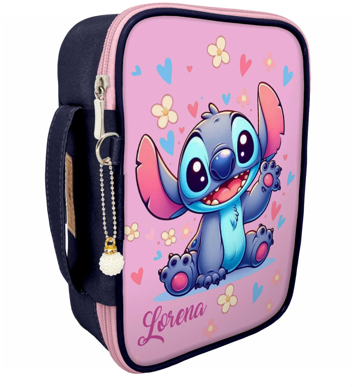Estojo 100 pens box grande Stitch floral azul