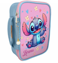 Estojo 100 pens box grande Stitch floral azul clar