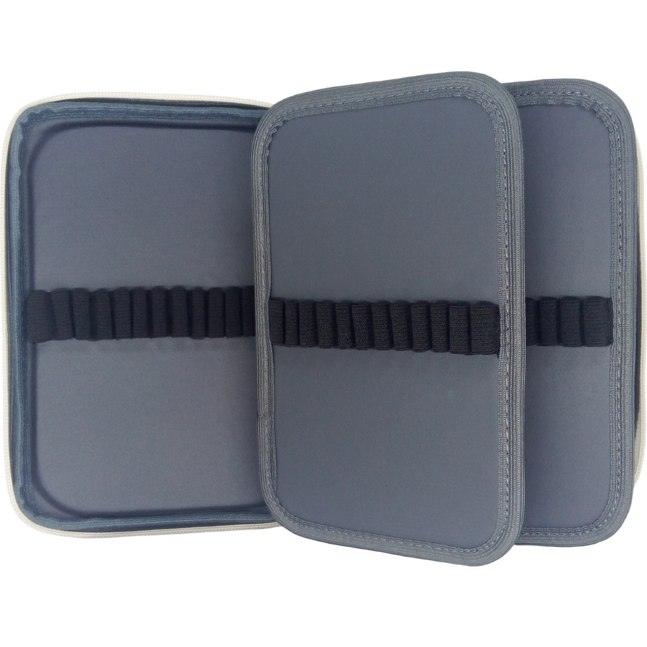 São 38 elásticos que facilitam a organização das suas canetas, bolso para suas canetas grossas, bolso para itens pequenos e sua alça de mão facilita o transporte.