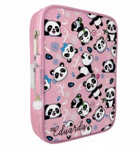 Estojo 100 pens box slim escolar panda rosa