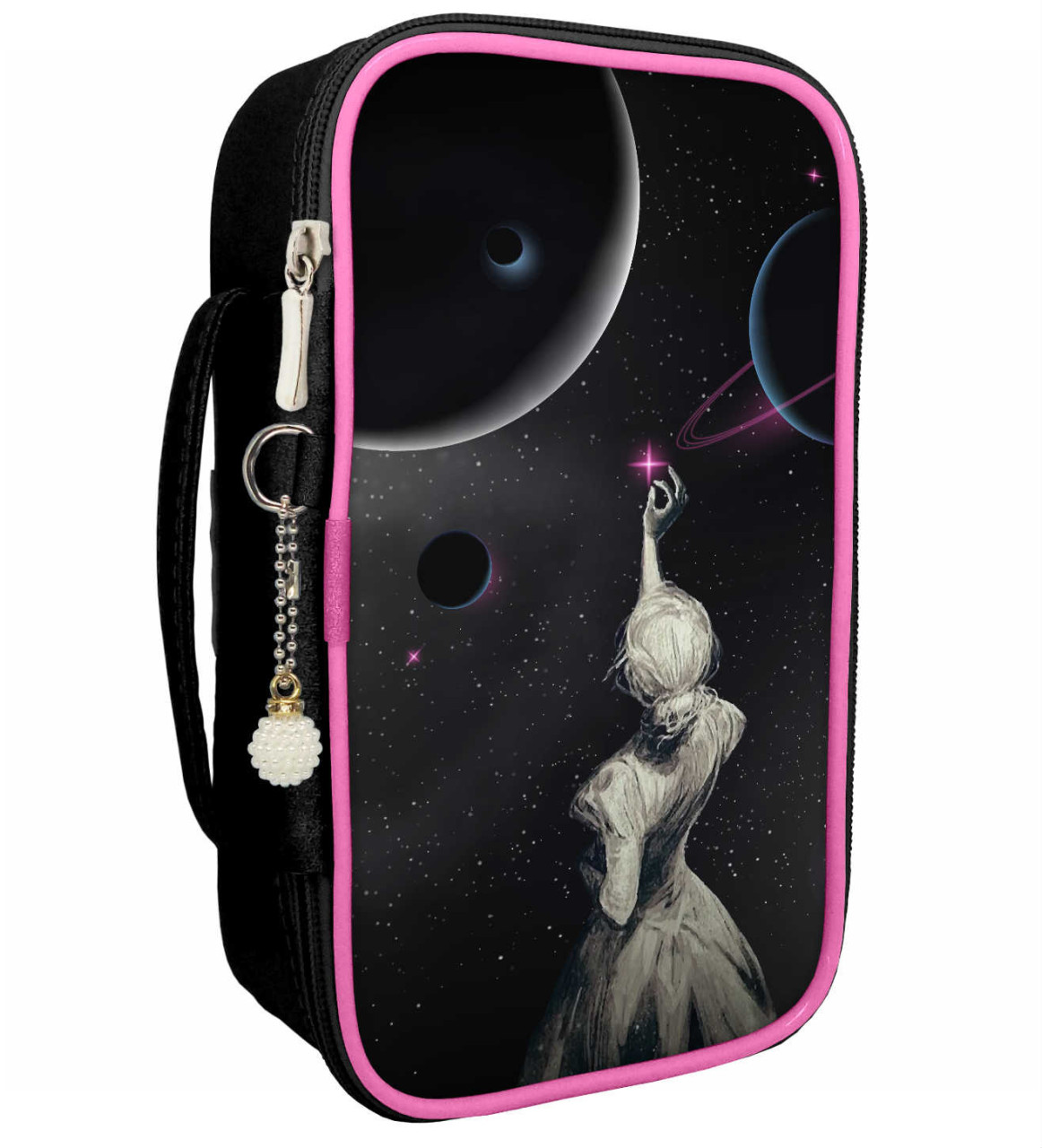 São 21 elásticos que facilitam a organização das suas canetas, bolso para suas canetas grossas e sua alça de mão facilita o transporte. Imagine nunca mais precisar vasculhar gavetas ou bolsas em busca da caneta certa!