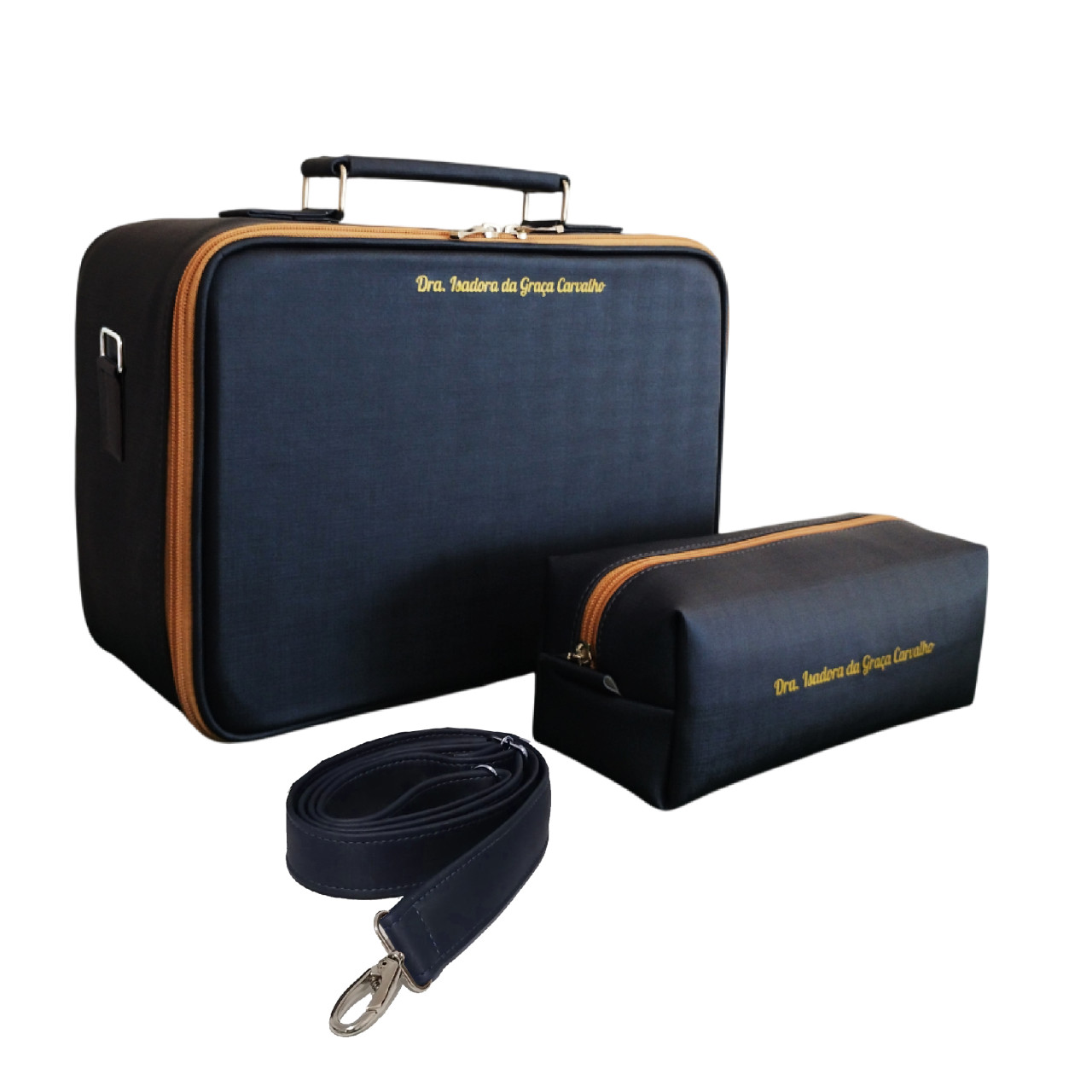 Maleta medica academica azul marinho ziper ocre