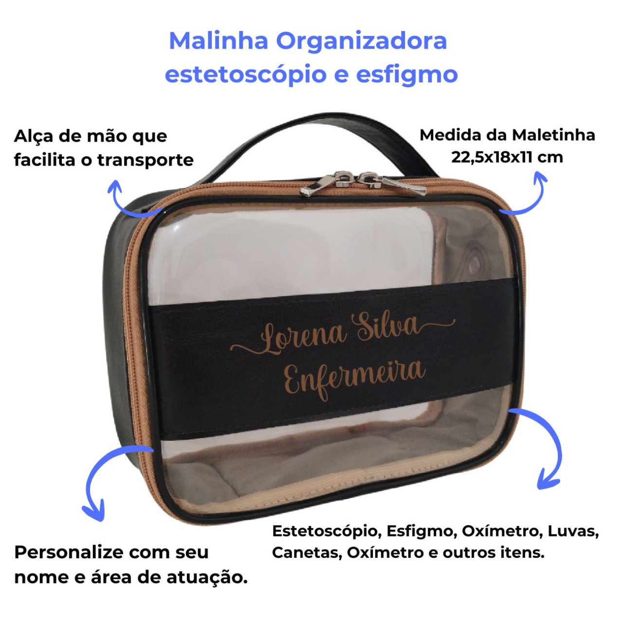 *** Informe o nome e a área de atuação que deseja personalizado na sua malinha no ato da compra.