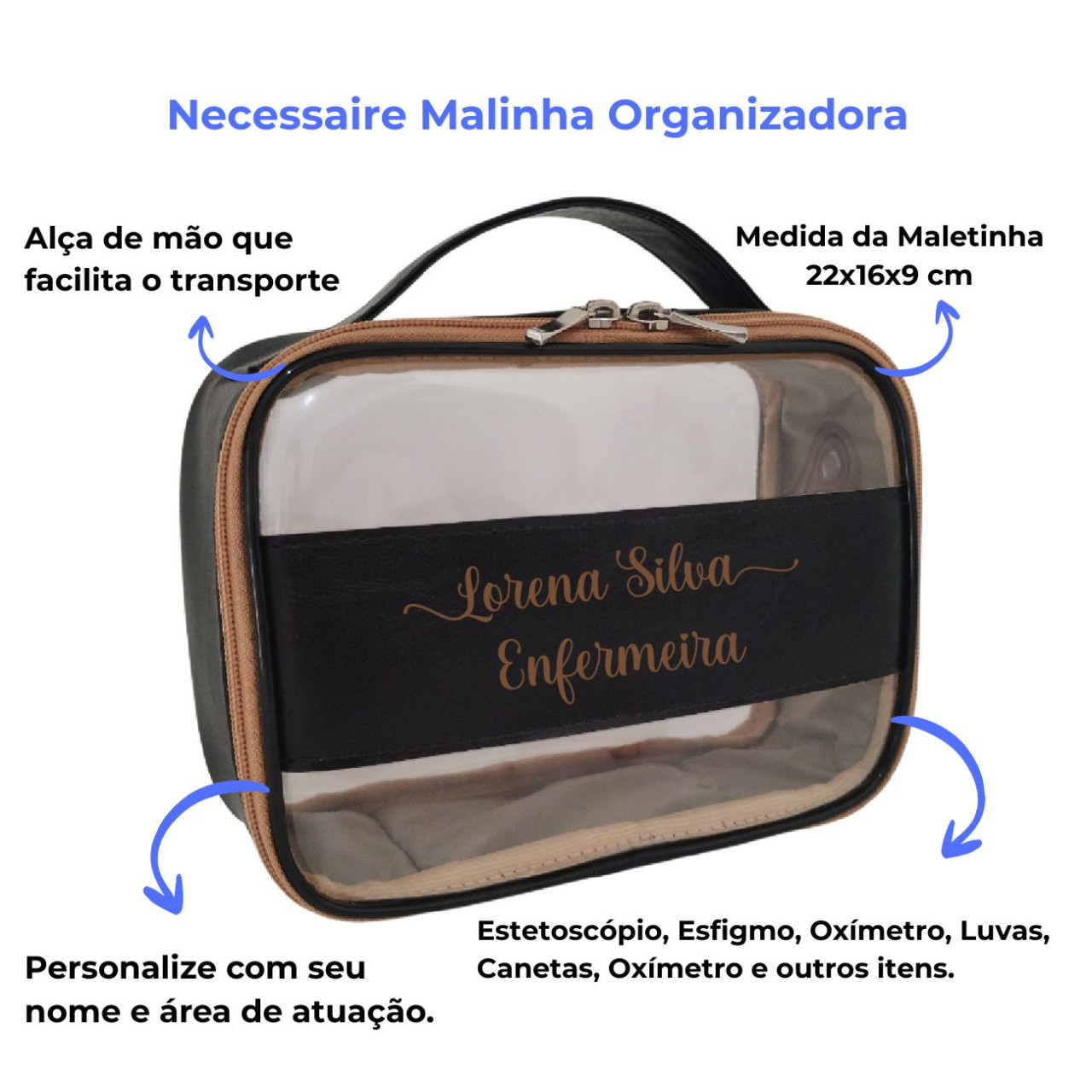 A malinha organizadora é perfeita para quem está iniciando estágios ou faculdade.