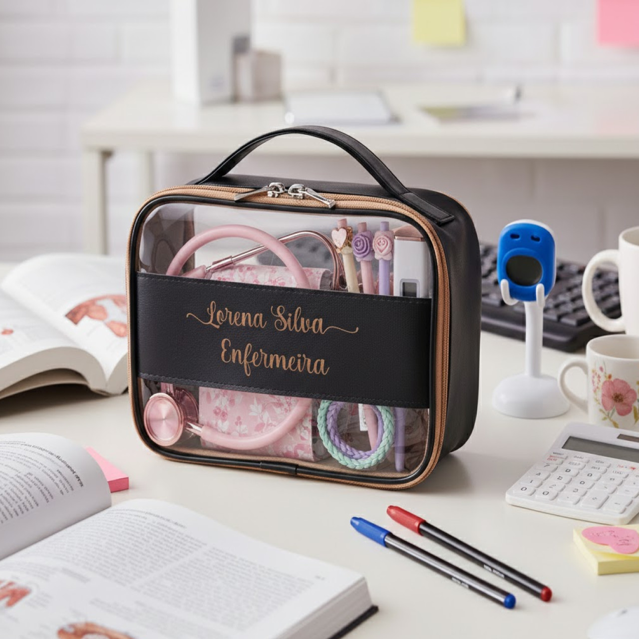 A malinha organizadora é perfeita para quem está iniciando estágios ou faculdade.