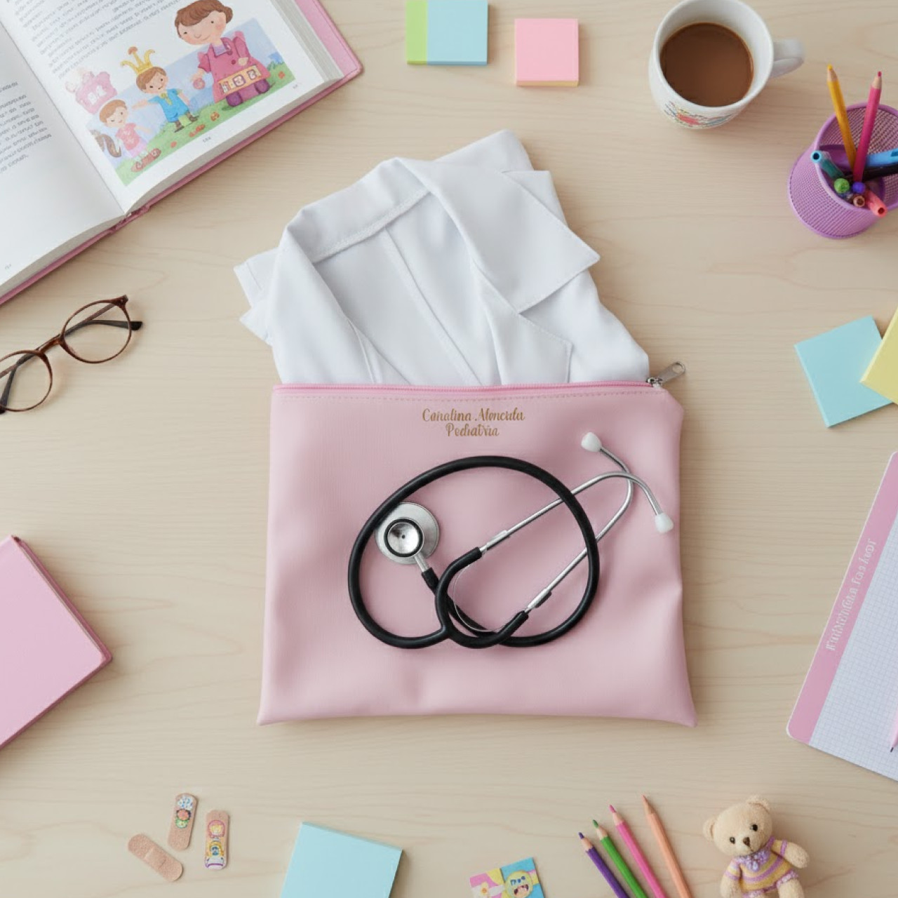 Porta jaleco e estetoscopio medicina rosa claro