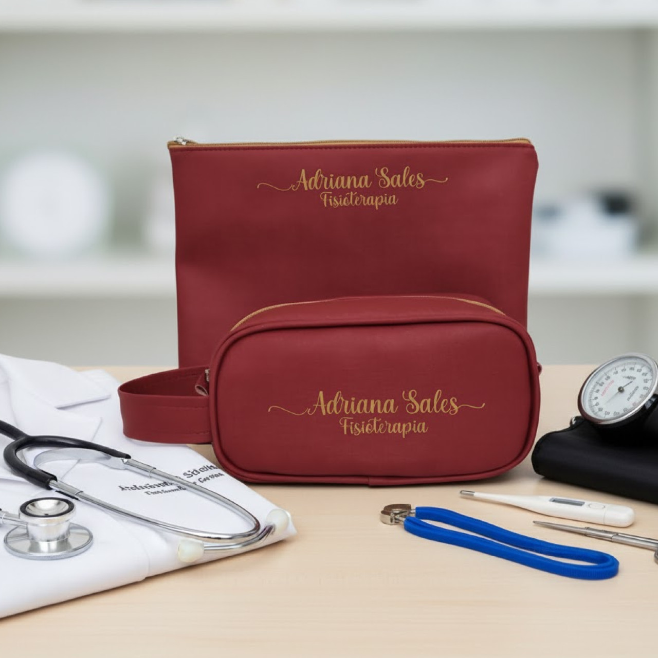 Porta jaleco estetoscopio e estojo Esfigmo vinho